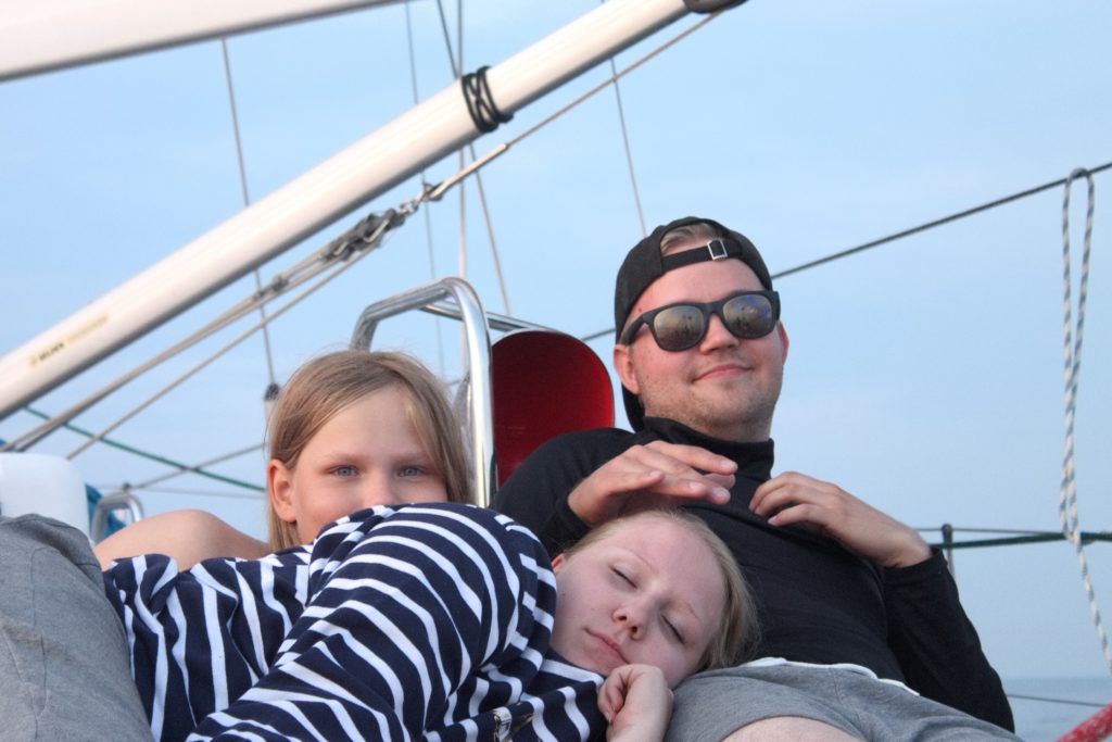 Kööpenhaminasta lähtiessä aurinko paistoi ja kohtalainen sivutuuli kiidätti Ilmatarta vauhdilla etelään. Olimme nyt liikkeellä perhemiehistöllä, mukana lisäksi Jere ensimmäisellä kunnon purjehduksellaan. Moottoriongelma ei ollut vielä ratkennut, mutta satamassa kone toimi normaalisti. Korjaajat olivat lomilla ja vasta yli viikon päästä voisi joku tulla katsomaan sitä. Emme halunneet jäädä odottamaan vaan lähdimme käymään Saksan puolella Rügenillä.