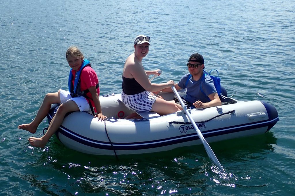 Vietimme pari helteistä päivää 10 km pitkän hiekkarannan edustalla. Ennen kuin kone oli kunnossa, ei voinut ajatella Rügenin kiertämistä: matalien särkkien läpi kiemurteleva väylä oli liian kapea kuljettavaksi pelkin purjein. Nuoret kävivät kumiveneelle rannassa ja kaupassa. Kuumia päiviä seurasi tyyniä iltoja ja kasteisia, tähtikirkkaita öitä. Kaukana näkyivät kylän valot ja lahden toisella rannalla tuikki Arkonan majakka.