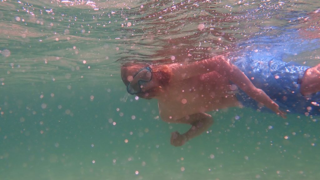 Vesi oli kirkasta, pohja tuli näkyviin yli kymmenestä metristä. Aaltojen kuvioimalla hiekkapohjalla näkyi snorklatessa meritähtiä sekä tasku- ja erakkorapuja. Pitkäsiimaisia meduusoja piti välillä väistellä. Oli mahtavaa olla taas suolaisilla vesillä!