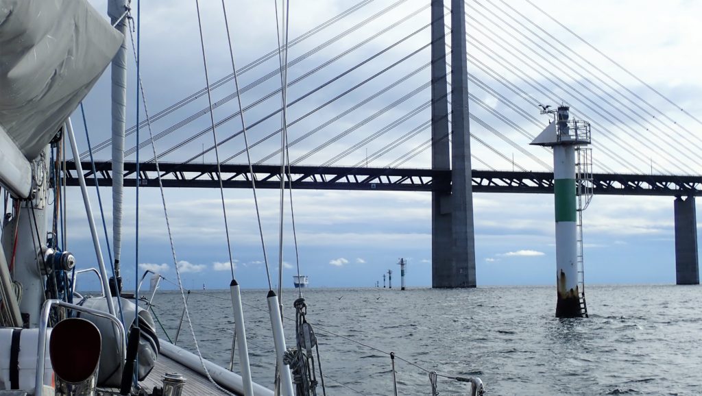 Helsingørin kohdalla viereen ajoi yllättäen iso musta kumivene ja viranomaiset pyysivät lupaa nousta veneeseen. Mukana oli rajavartiosto, tulli ja poliisi. Seurasi passien ja veneen papereiden tarkastus, kysely matkareitistä sekä pikainen katselmus sisällä. Parinkymmenen minuutin päästä saimme jatkaa matkaa ja kumivene kaarsi kohti lähintä saksalaisvenettä.