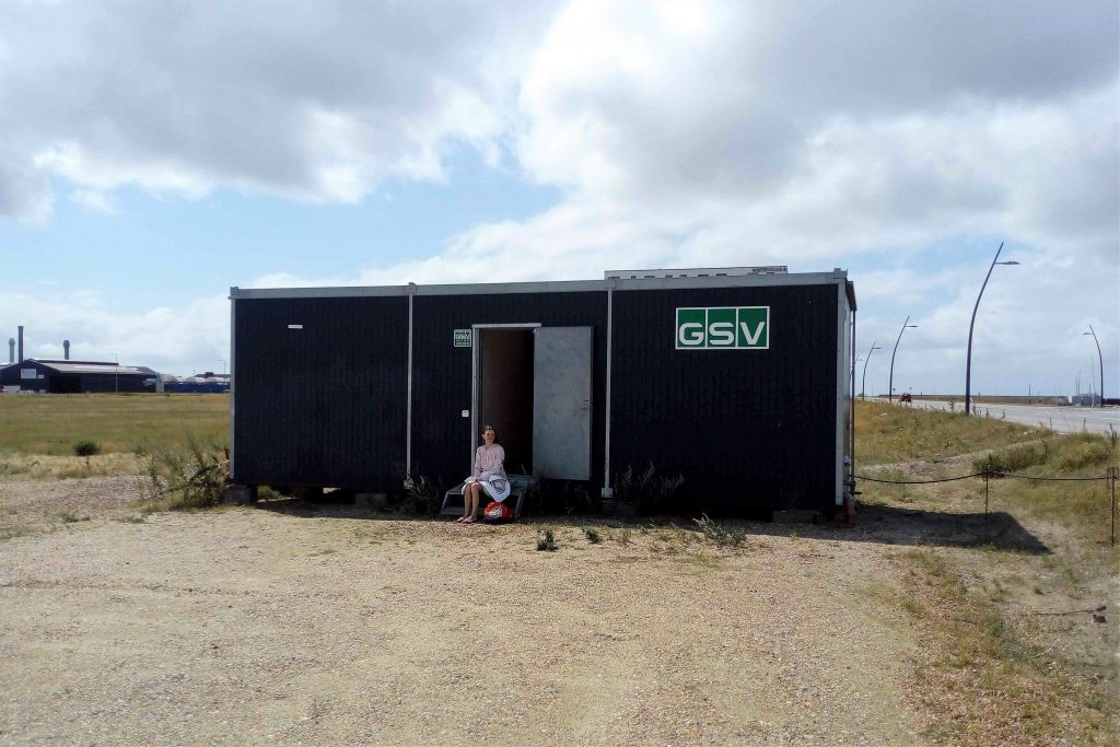 Uusi vierassatama sijaitsee neljän-viiden kilometrin päässä kaupungin keskustasta. Tukevia laitureita lukuun ottamatta se oli vielä pelkkä rakennustyömaa. WC ja suihku löytyivät kontista, joka oli sijoitettu heinikkoislle aukealle puolen kilometrin päähän. Kauppojakaan ei ollut lähellä, mutta ainakin vene olisi täällä hyvässä turvassa viikon verran. Anni jäi venevahdiksi, kun lähdin Suomeen ottamaan toisen koronarokotuksen.