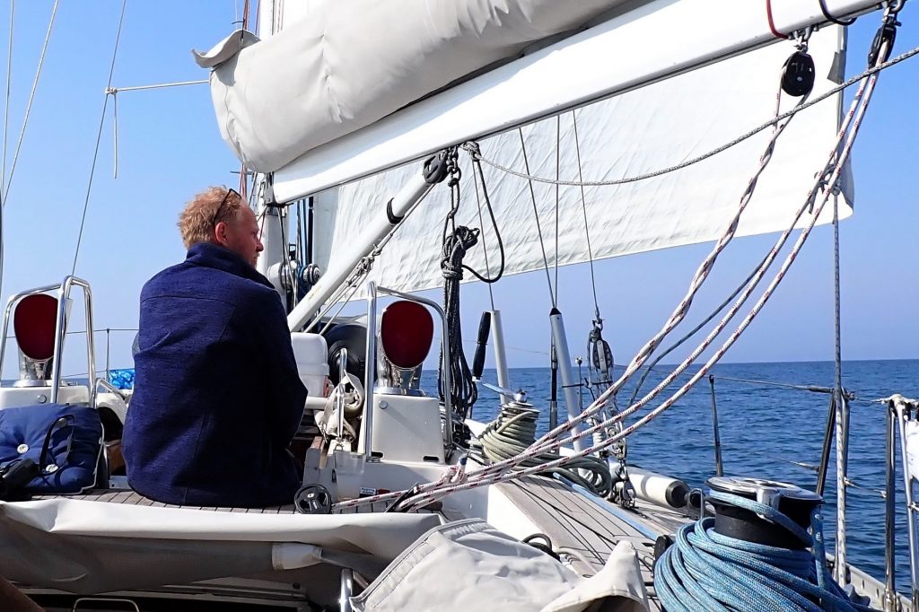 Ensimmäinen yö merellä oli leppoisa: vaalea taivas ja kevyttä etelänpuoleista tuulta. Aamulla Hankoniemi hävisi näkyvistä kaukana styyrpuurissa. Vahdit pyörivät aluksi neljän tunnin rytmissä – minä yksin, Ari ja Uffe kahdestaan – mutta kevyessä kelissä ne pitenivät nopeasti viiteen-kuuteen tuntiin.