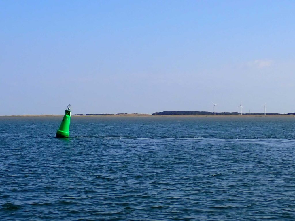 Lähdimme Hvide sandista liki tyynelle merelle, eikä tuuli herännyt kunnolla koko päivänä. Noin 50 mailin matka Esbjergiin johtaa Tanskan läntisimmän kärjen Blåvandshukin ympäri. Matalikot jatkuvat kauas merelle, ja merkitty laivaväylä tekee tässä kohtaa reilun mutkan ulos. Aiemmin särkkien välistä johti pienemmille aluksille tarkoitettu oikoreitti, mutta merimerkit on nykyisin poistettu. Väylää reunustavat laajat tuulipuistot.