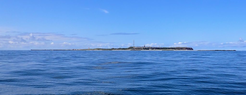 Helgoland on erikoinen paikka, Saksan ainoa ”valtamerisaari”. Nimitys on liioitteleva, mutta kuvaava. Merestä kohoavat pystysuorat, punaiset kallioseinämät ja tyrskyjen yllä liitelevät merilinnut luovat kaukaisen tunnelman. Päiväturistit täyttävät rantakadun, kauempana on rauhallisempi kylä ja taaimmat talot nousevat ylängölle saakka. Helgoland on edelleen verovapaa saari ja kaikkialla on tax free -myymälöitä.