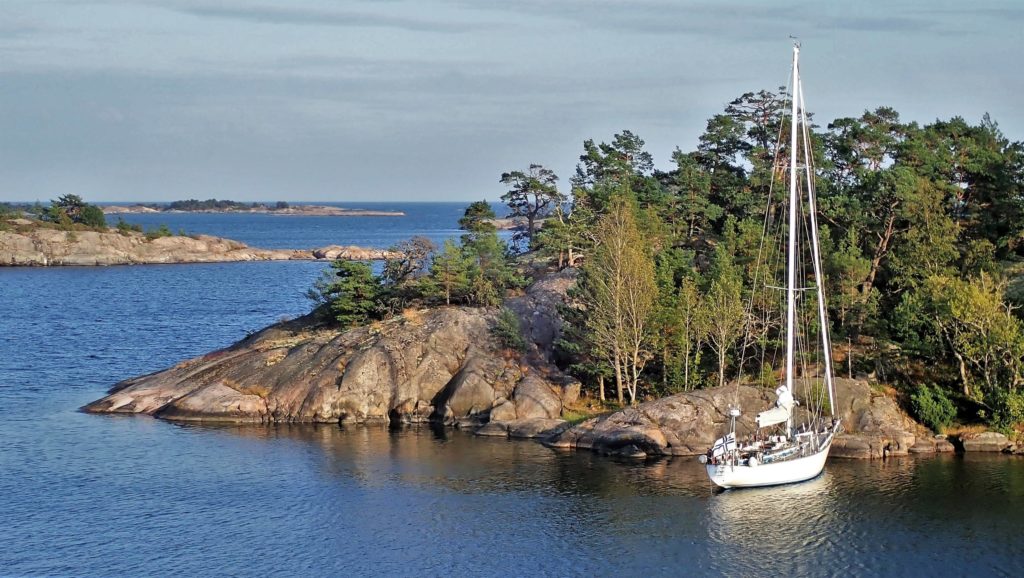 Inside the outer belt of densely located rocks, there are relatively large areas of open sea with sparsely dispersed, forested skerries. Here, the sailor has a good chance of finding a solitary anchorage.