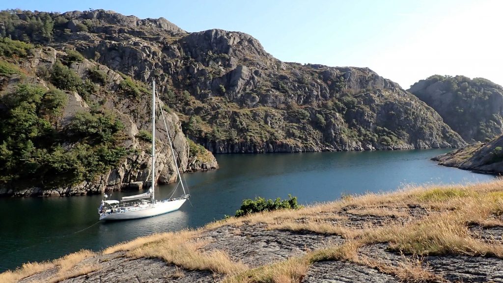 The prevalent anchoring technique is to deploy a stern anchor and to moor bow-in to a usually rocky shoreline. The bow lines are tied to a tree or rock, or to a special nut adjusted into a crevice. In popular places one can even find metal rings set into rocks.