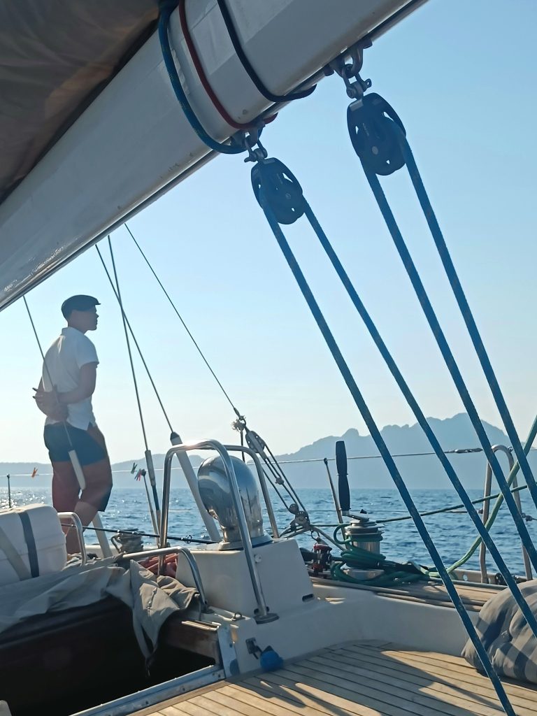 Lähdimme matkaan kevyissä tuulissa. Rodoksen marinasta on noin 25 mailia Symin saaren lähimpiin lahtiin. Matkalla täytyy koukata hieman etelään, ettei ylitä Turkin aluevesirajaa.