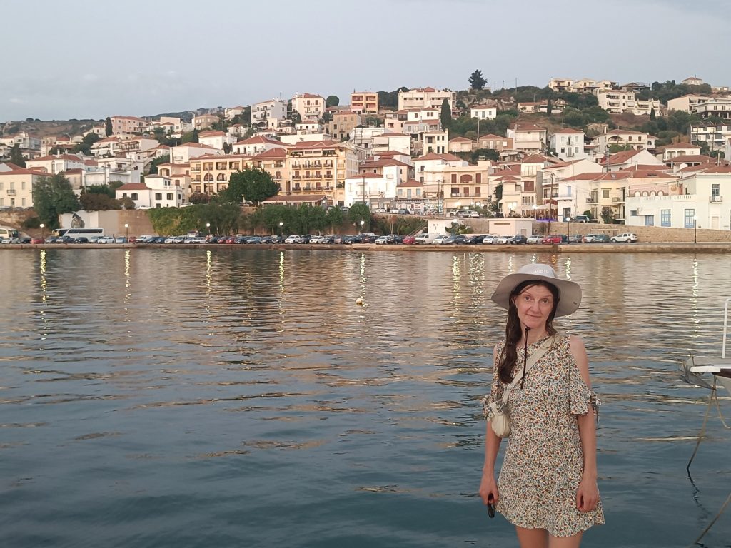 Seuraavana päivänä siirryimme lahden etelärannalle, Pyloksen kaupungin satamaan. Herätimme hilpeyttä muutamassa veneessä laskemalla pohjolan tyyliin peräankkurin ja kiinnittämällä tyynesti keulan laituriin. Muut sitä vastoin olivat paikalliseen tapaan laskeneet ankkurin keulasta ja kiinnittyneet laituriin perä edellä.