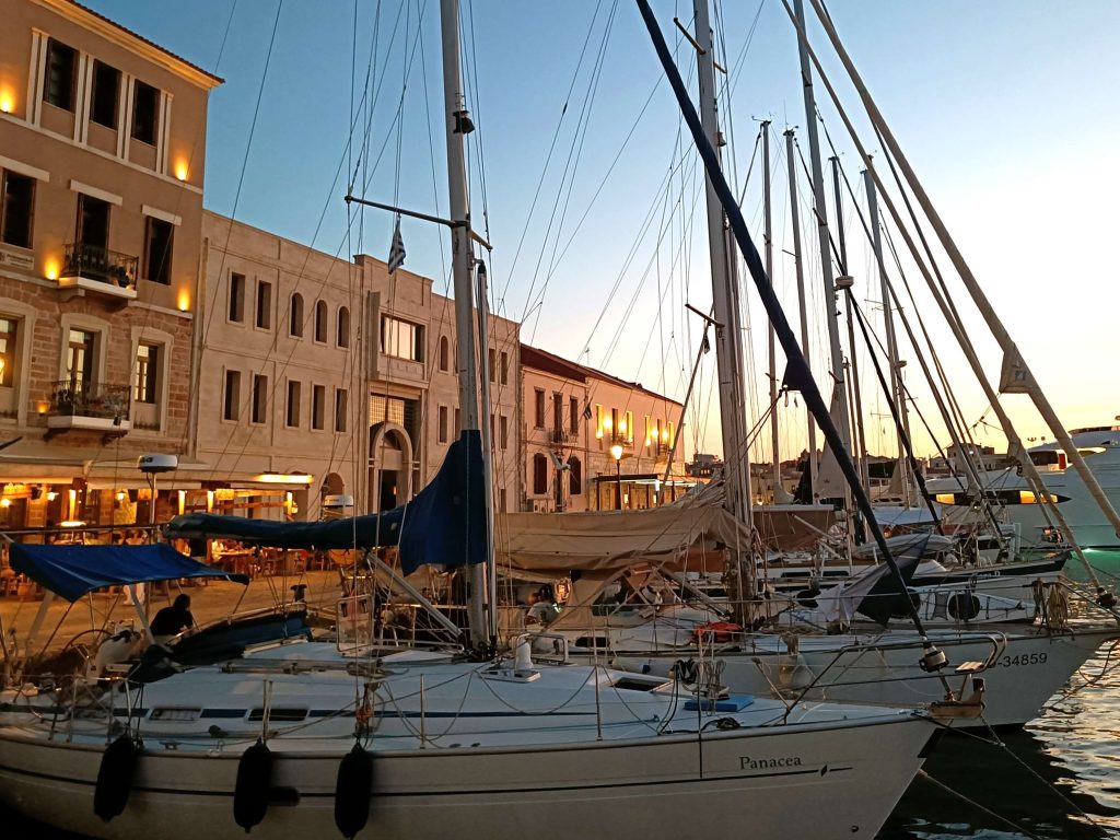 Pahin kuumuus alkaa hellittää Kreetan Haniassa, kun aurinko lähestyy horisonttia. Matkailijat vaeltavat laiturilla vanhojen venetsialaisten rakennusten editse, Ilmatar on sulautunut osaksi turistinähtävyyttä, kaupungin satamaa.