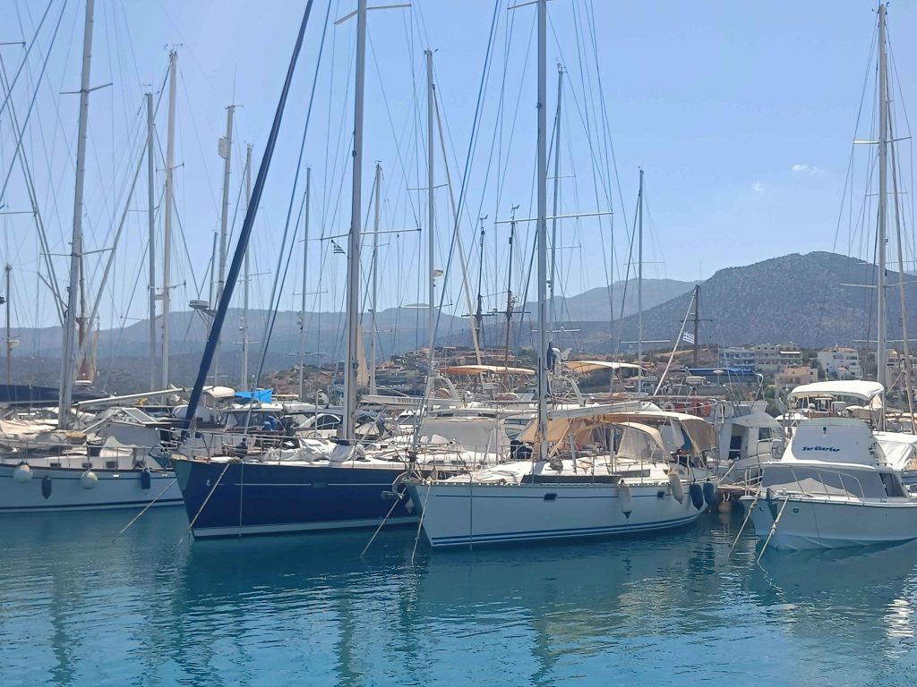 Läheisen Agios Nikolaoksen marinasta löytyi laituripaikka yhdeksi yöksi. Halusimme nähdä monen kehuman sataman myös sen kannalta, voisiko veneen jättää sinne pidemmäksi ajaksi.