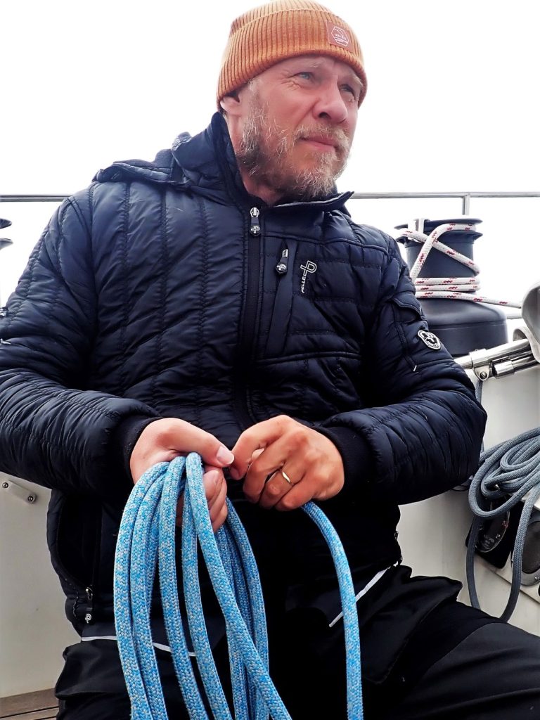 Hän kysyi, oliko meillä yöllä 25–30 solmua tuulta. Kuultuaan, että kovimmillaan 30–35, hän kohotti kulmiaan ja virnisti. ”OK, then you must know. It’s an interesting place, isn’t it?”