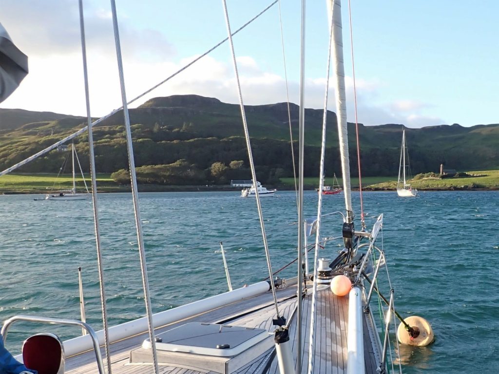 Vuorokauden kestäneen 135 mailin matkan jälkeen yövyimme levollisen kauniissa ankkurilahdessa Loch a’ Chadh-fissa kahden brittiveneen seurassa.